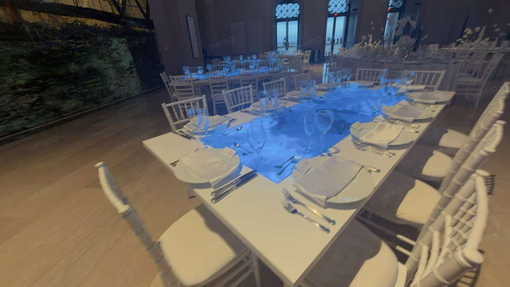 UHLED has reimagined digital dining experiences in America with the deployment of 10 Foldable Poster LED Displays for an exclusive Michelin-starred restaurant concept in New York. Moving beyond conventional signage, we delivered custom P1.86 pixel pitch displays featuring a stunning blue wave visual, seamlessly embedded into pristine white dining tables. This artistic installation transforms each table into a luminous canvas, where dynamic blue ripple effects and curated content create an immersive, meditative ambiance that elevates the culinary journey into a multisensory experience.