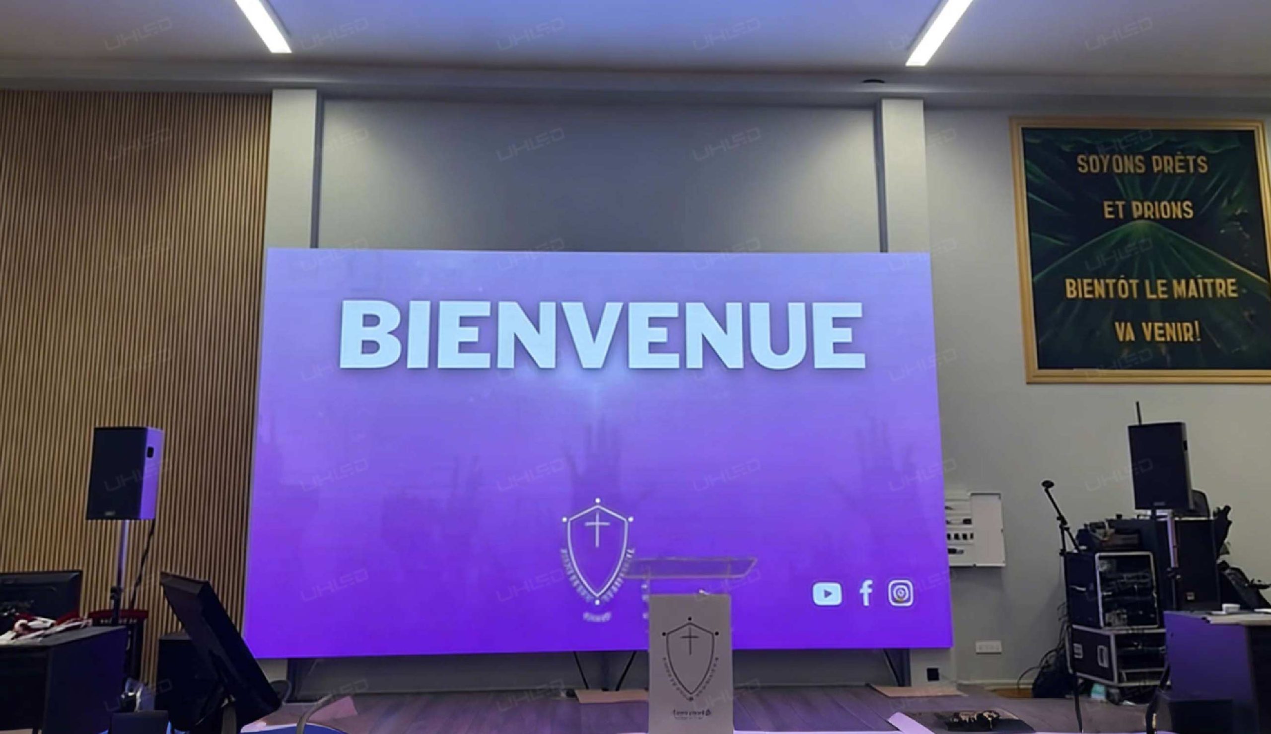 UHLED provided and installed a custom-engineered fine-pitch LED display, specifically designed for the demands of the French corporate presentation environment, featuring the following core advantages: